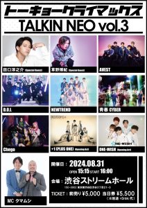 8月31日(土)渋谷ストリームホールで開催される 『トーキョークライマックス×TALKIN NEO Vol.3』へ出演決定いたしました。 イベント詳細は下記URLからご確認ください。 https://hironoriku […]