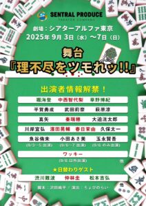 舞台『理不尽をツモれッ!!』 脚本:沢田純平 演出:ちょびのらい 【公演期間】 2025年9月3日(水)~9月7日(日) 【劇場】 シアターアルファ東京 【キャスト】 堀海登 中西智代梨 草野博紀 平賀勇成 武田莉奈 萩 […]