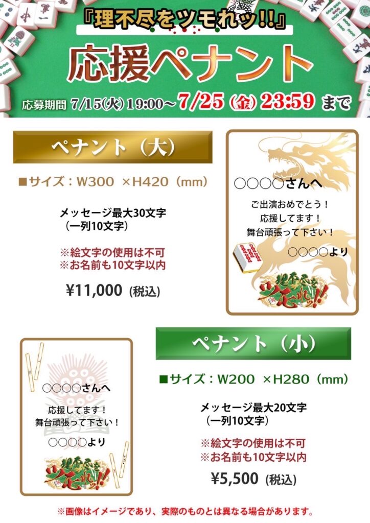 「理不尽をツモれッ!!」にて、応援ペナントの販売が決定いたしました。